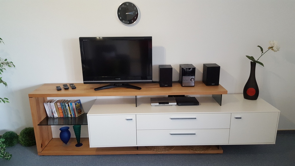 (38 qm) mit zusätzlicher Schlafmöglichkeit. Digital-SAT-TV, 32" LCD-Flachbildschirm, kostenloses super- schnelles Internet mit bis zu 50 MBit/s. WLAN-Internet-Zugang, Direktwahltelefon auf Wunsch, Hifi Radio/CD- Stereoananlage, DVD-Blu-ray-Player stehen Ihnen zur Verfügung.