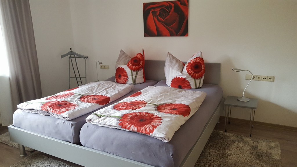 Im neu gestalteten modernen Schlafzimmer (20 qm) mit kosten- losem Safe können Sie die Nachtruhe genießen. Das 200/200 cm große Doppelbett mit verstellbaren Latten- roste u. Kaltschaummatratzen mit 5 cm Tempurauflage in Seniorenhöhe sorgen für einen erholsamen Schlaf. Kommoden u. ein großer Kleiderschrank bieten genügend Platz, verstellbare Leselampen sowie zwei Herrendiener runden den Komfort ab. Bettwäsche wird bereitgestellt.